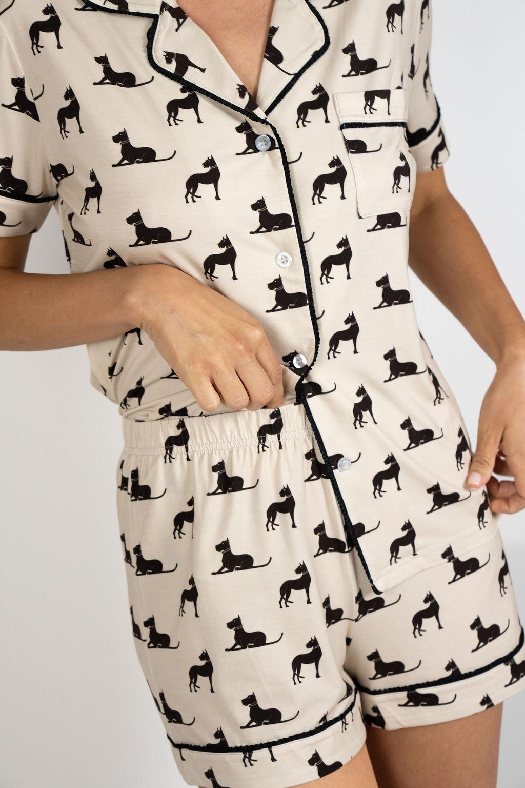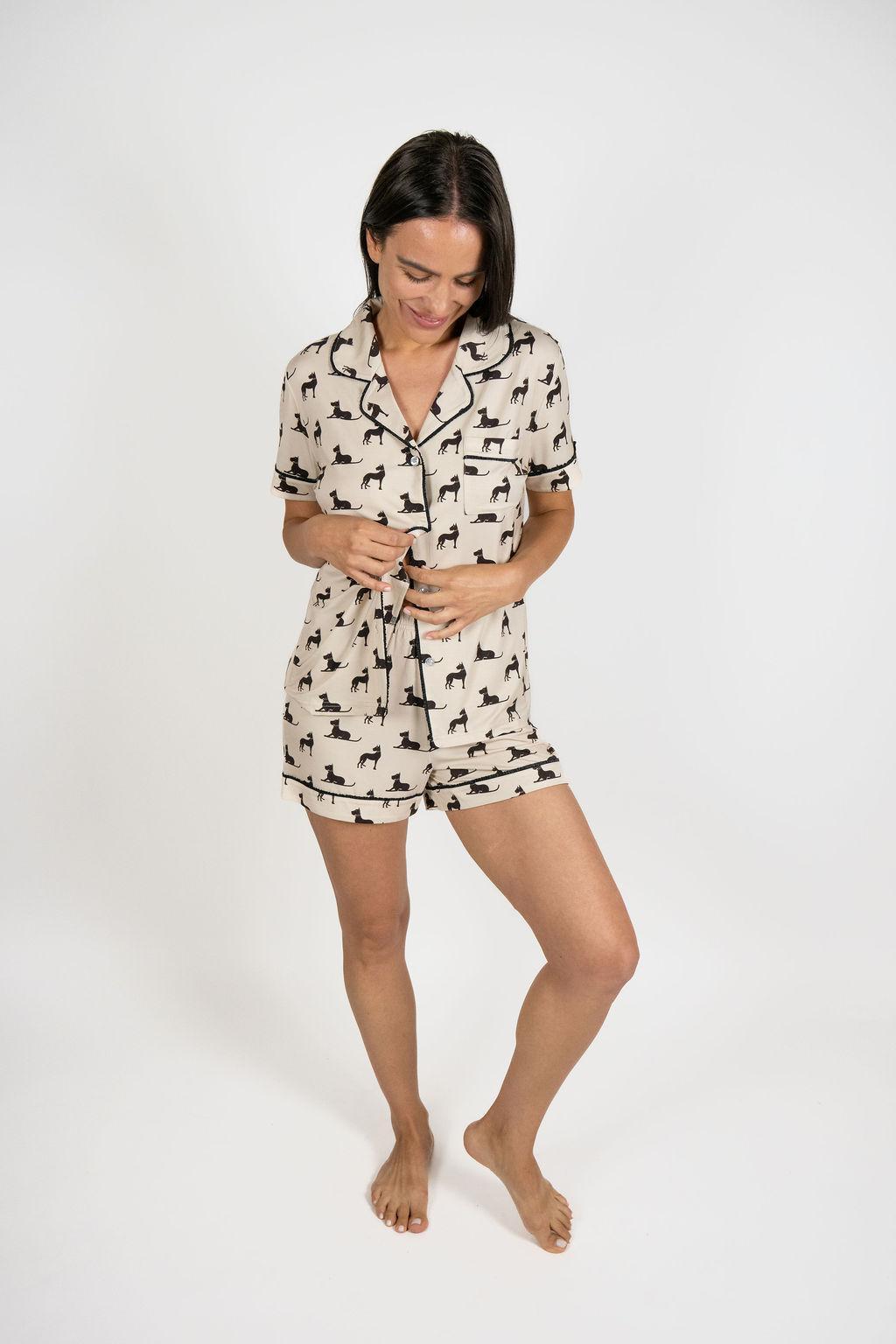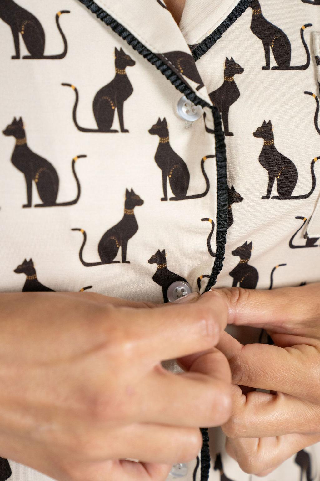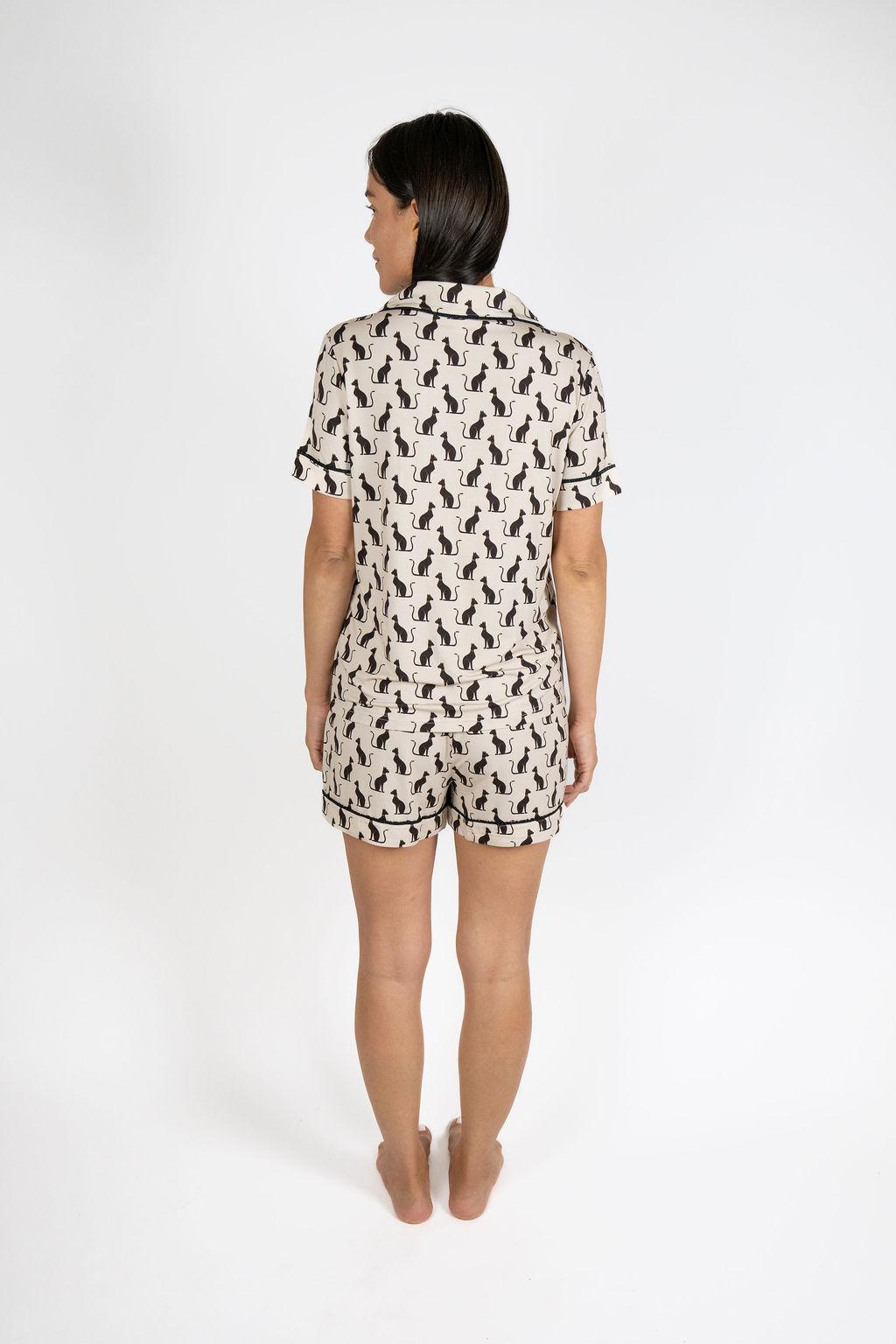 Jolene Short Pajama Set in the Majestic Cats Print is soft, stylish, and effortlessly chic, a modern take on women’s sleepwear and loungewear. In the Majestic Cats Print, Jolene elevates luxury lounging with an elegant, hand-drawn pattern inspired by the quiet confidence of cats and the timeless charm of elevated at-home living.